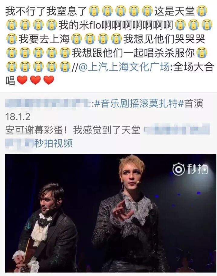 全程尖叫此起彼伏,演员每一个小动作都可以引起观众的一片惊呼。火爆程度,力压前几年同样在文化文化广场上演的《剧院魅影》《巴黎圣母院》《罗密欧与朱丽叶》……