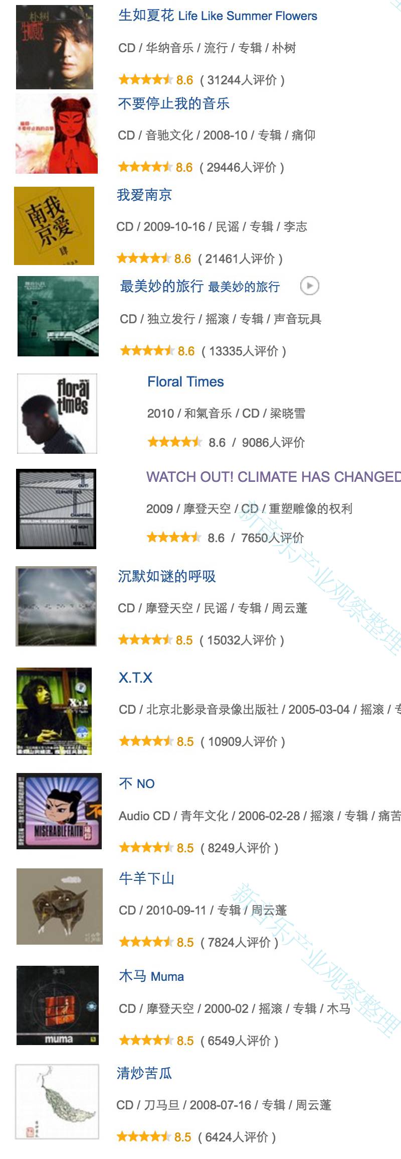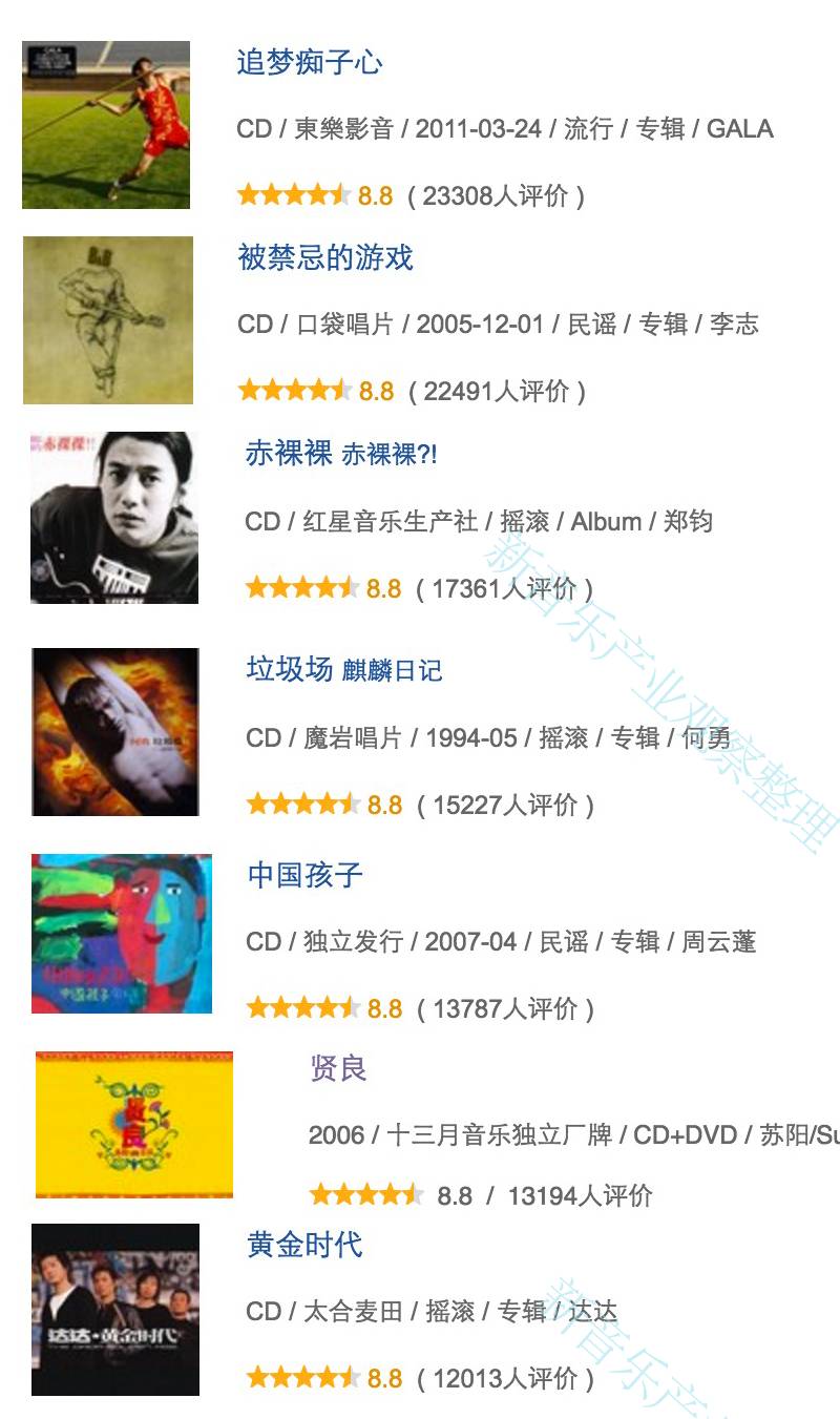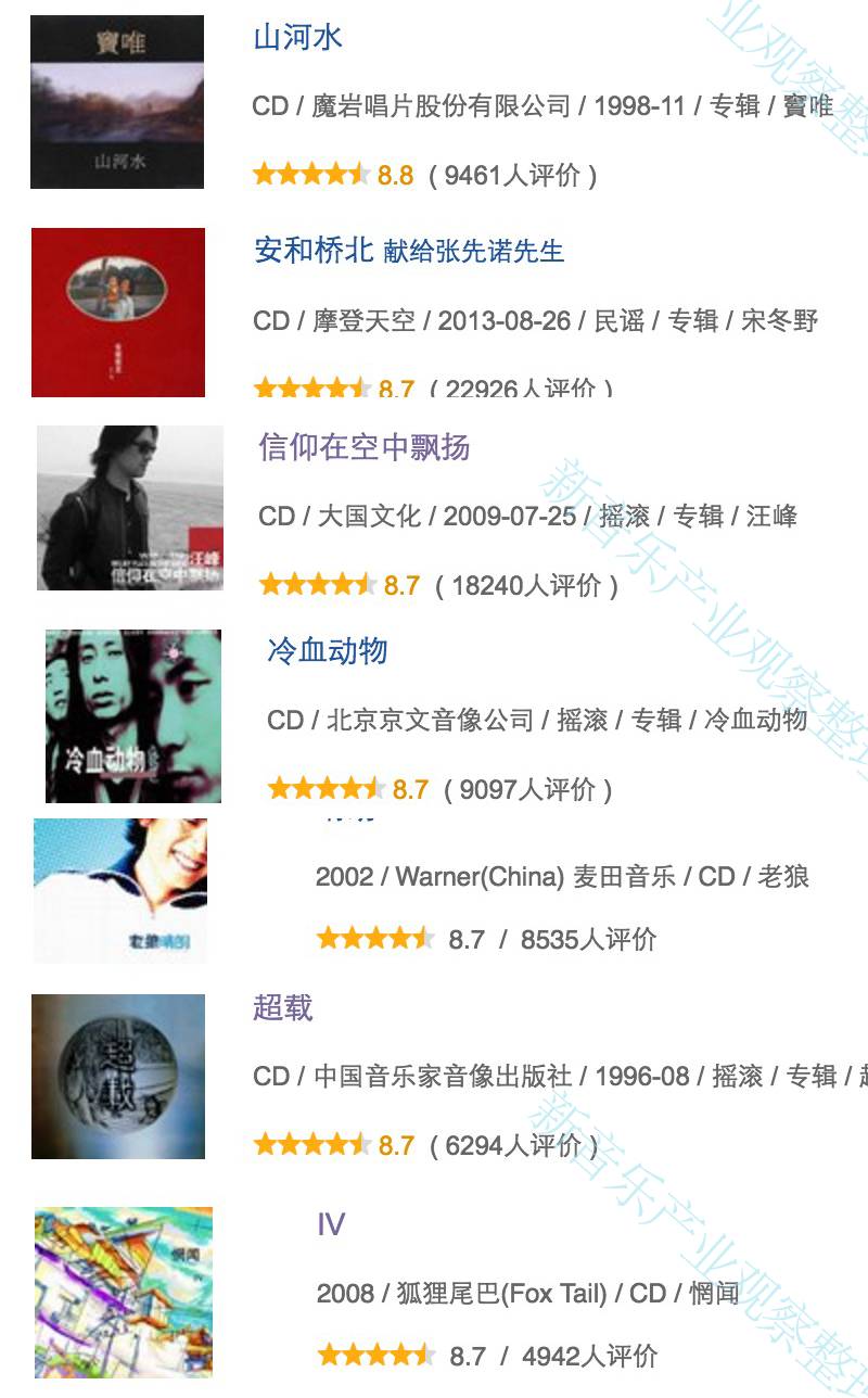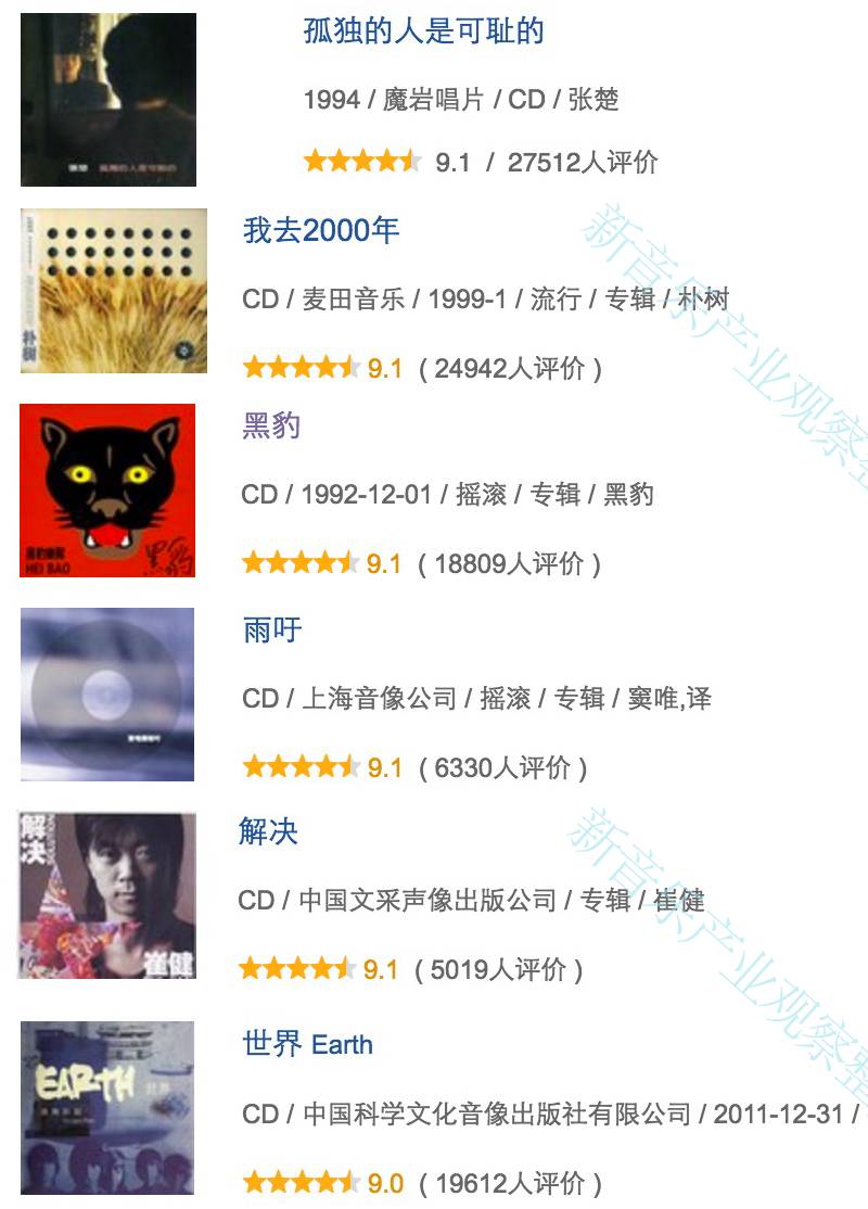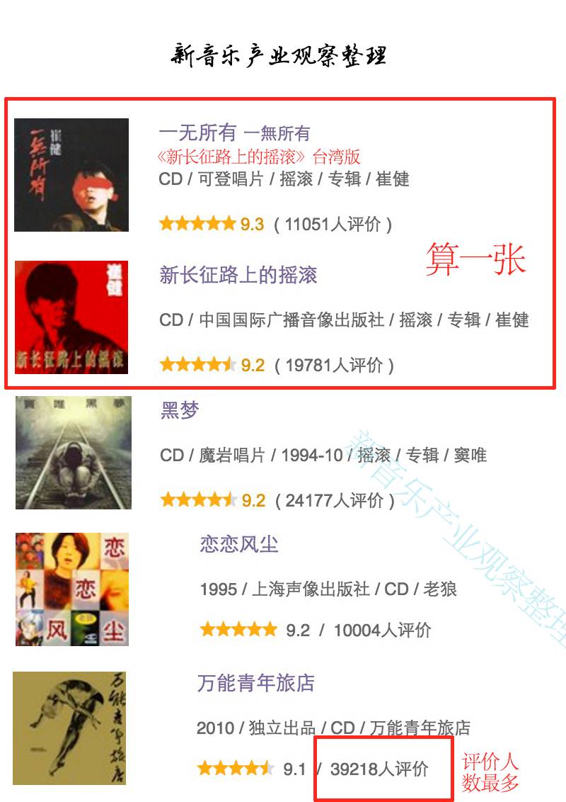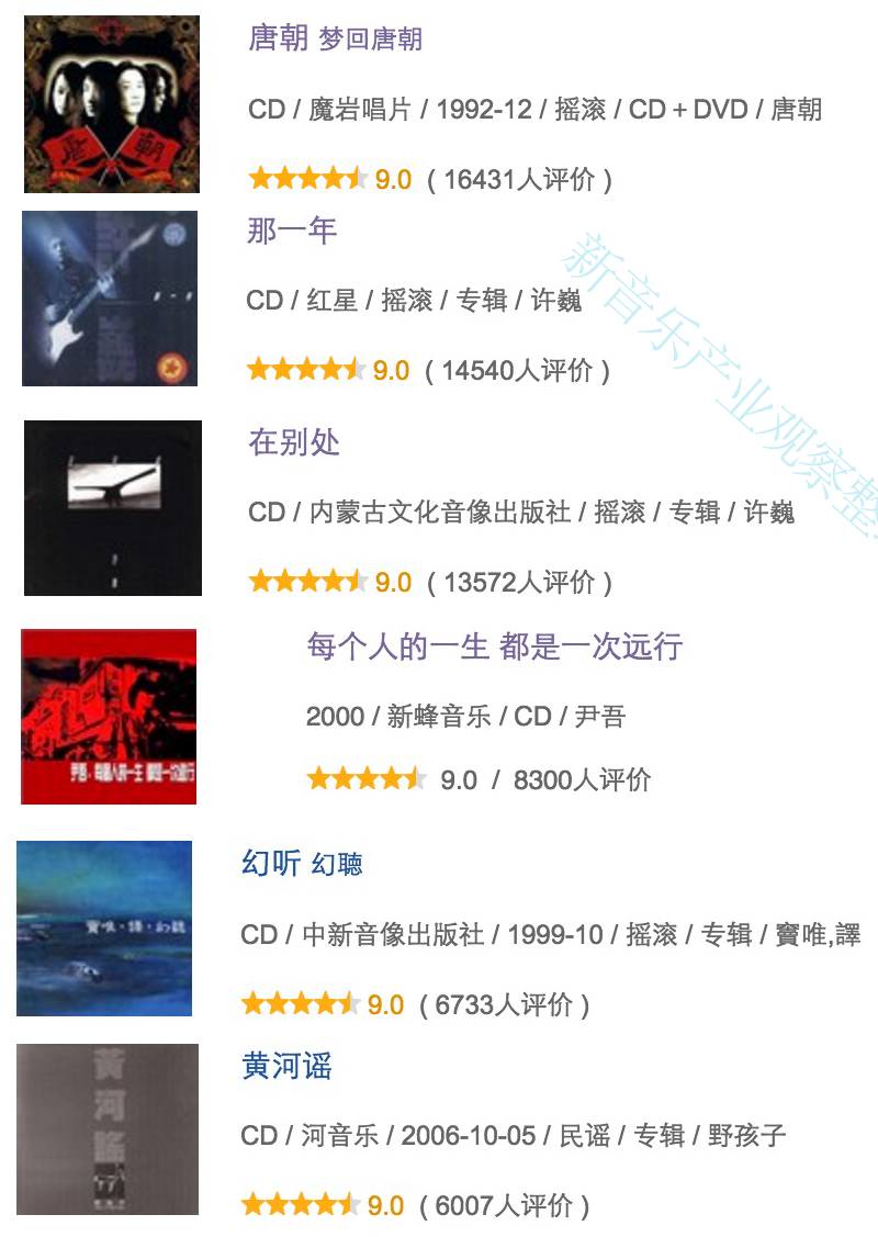 3.以5000人评价为一个基本要求,含四舍五入,比如4500四舍五入算5000。之所以设一个评论量门槛,是因为我们认为评论量太低,很难比较。肯定有人会说,评论多不能说明问题,摇滚青年都喜欢标榜小众。不过,我们更愿意把“摇滚”放到大众视野里来看待,评价多说明大众接受度高。至于接受度和音乐好坏,我们当然知道没有直接联系,但,我们又没有说评分高,音乐就一定好。