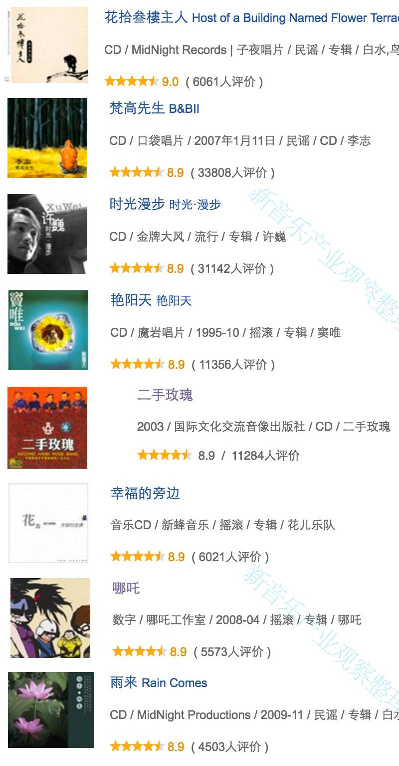 从结果看,跟预计的差不多,经典就是经典,崔健、“魔岩三杰”、许巍等最常被人提到的经典专辑评分上表现突出。