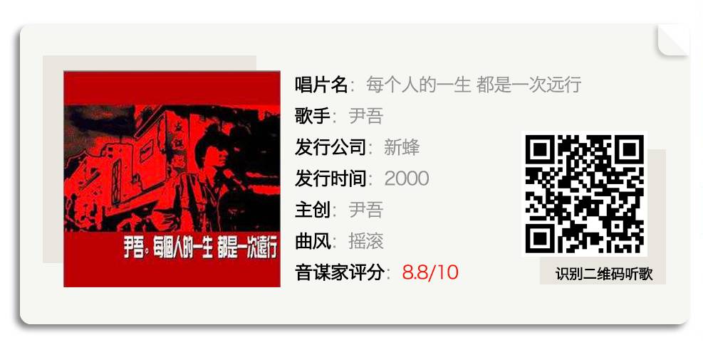 读读尹吾专辑《每个人的一生 都是一次远行》的乐评。(识别二维码,或者点击阅读原文)