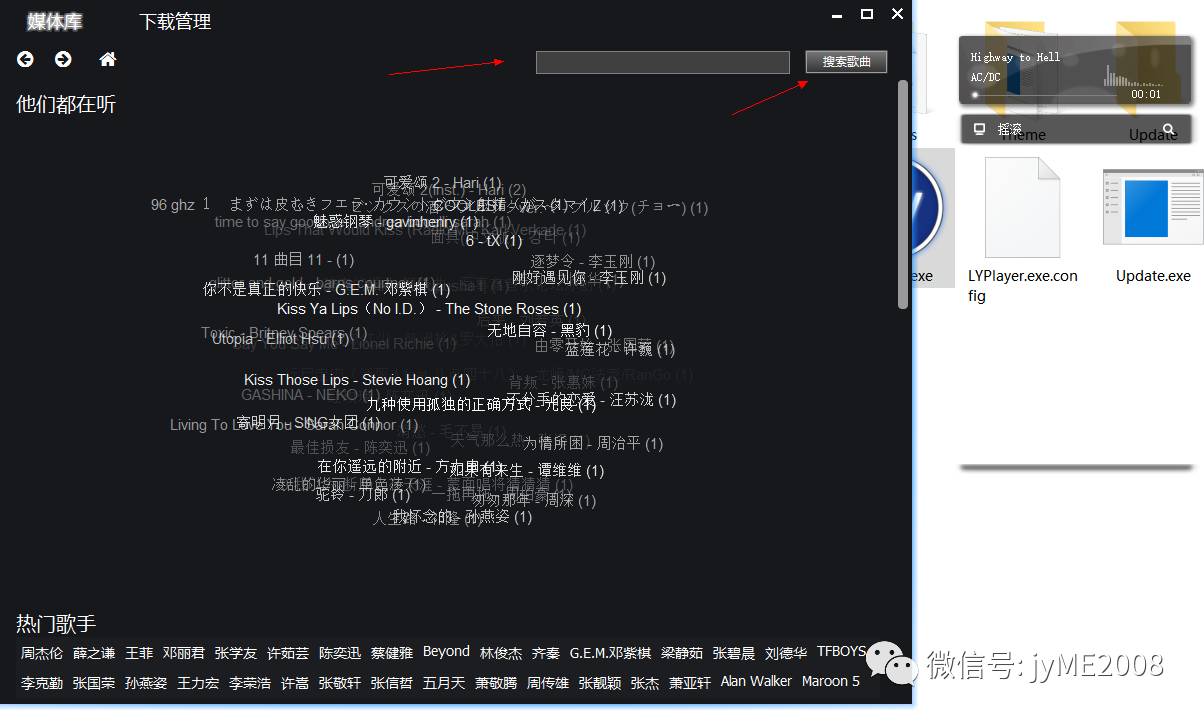 下载解压,打开软件LYplayer.exe, 在播放器处右键选择歌曲下载,进入下载页面