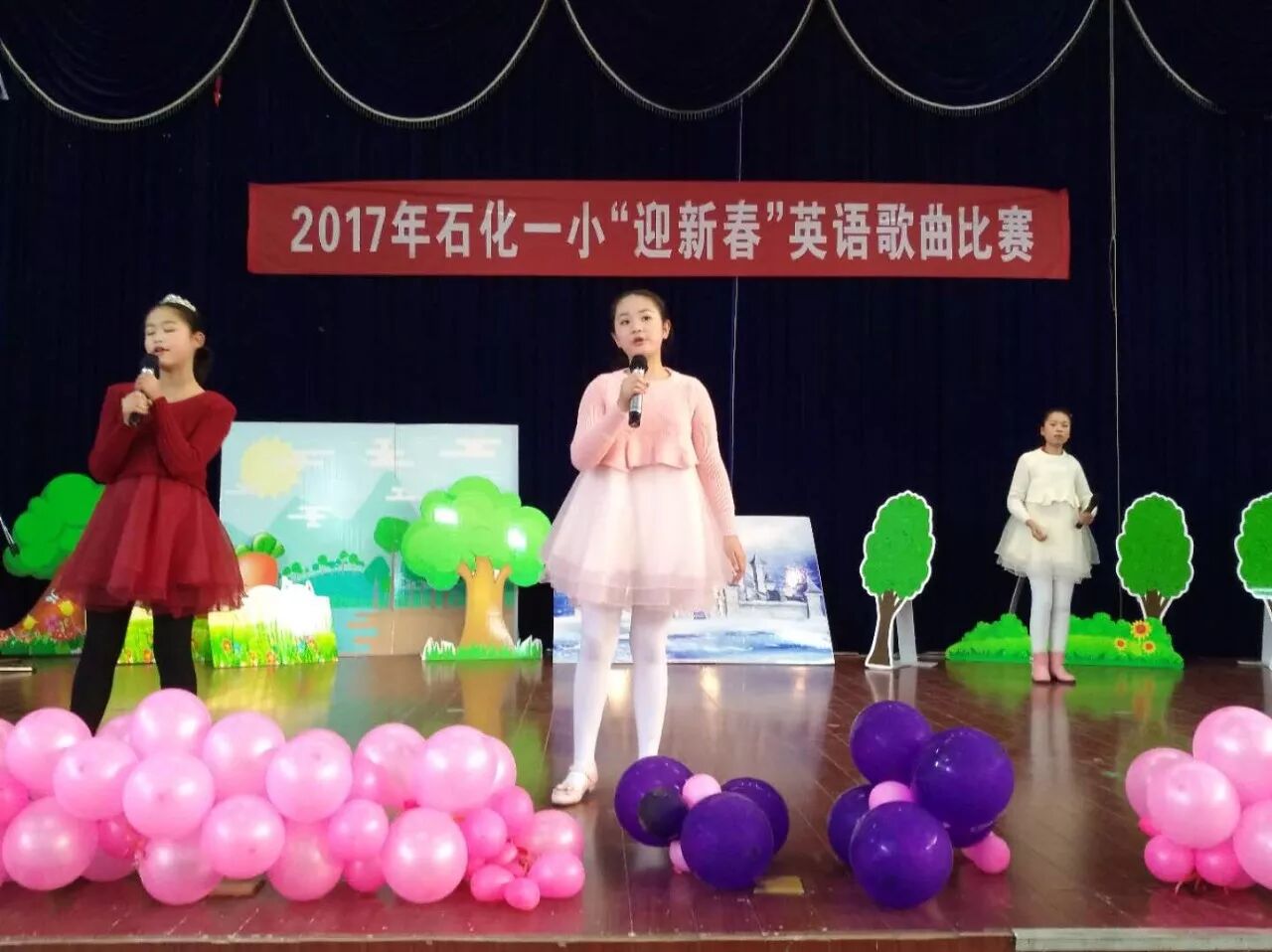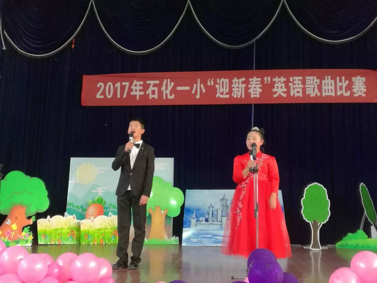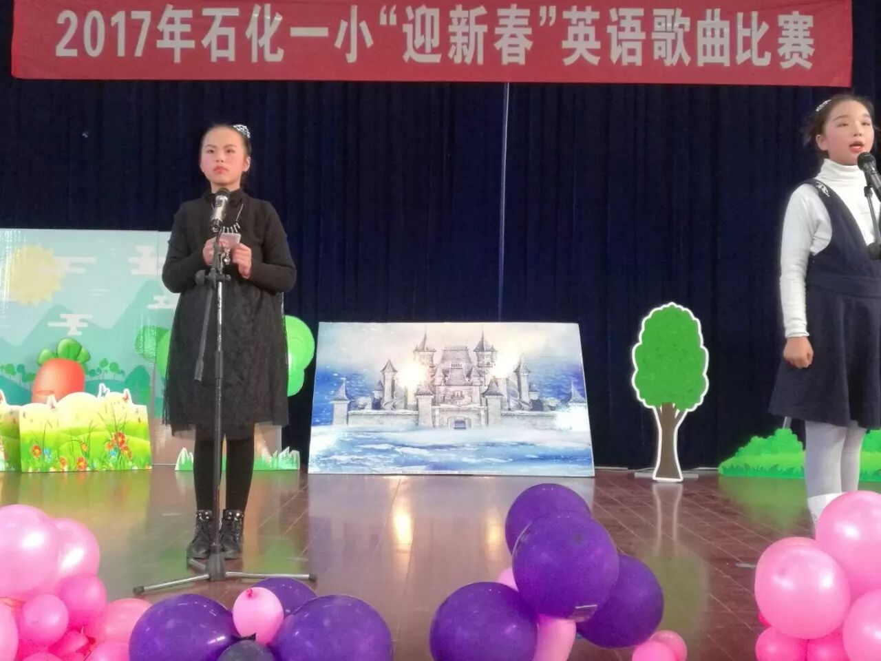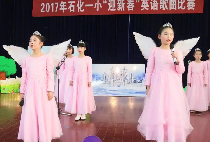 12月26日下午,石化一小多功能厅内,2017年”迎新春”英语歌曲比赛在孩子们的欢呼声中拉开了帷幕。