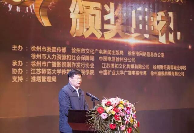 颁奖典礼上,、徐州市文广新局副局长艾新建、徐州市委宣传部网络中心主任林飞、徐州市文广新局广播影视处处长唐高岭、徐州市人保局职业技能建设处处长路保军、中国矿业大学公共管理学院党委副书记丁恒星、徐州艺术学校副校长闫励、中国电信徐州分公司创电部主任鹿存坡出席大赛颁奖典礼,并启动2018金紫薇奖第五届中国.徐州网络公益短片暨微电影大赛。