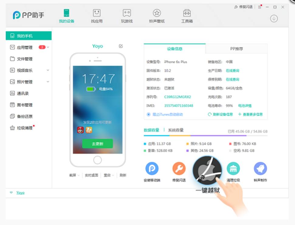以上就是用PP助手进行越狱的方法啦!但是哎妹必须要提醒大家的是,越不越狱呢主要都是看你们自己的心情,毕竟手机是你的,怎么放飞自我也是你自己的事情对不对!