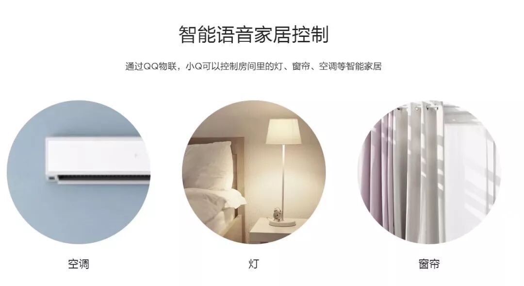 通过QQ物联,小Q可以控制房间里的灯、窗帘、空调等智能家居。