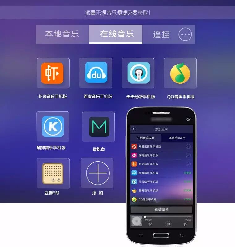 第三代智能音响在支持海量在线音乐的同时,重点强调了产品对无损音乐的支持,配合强大的Juke-box“点唱机”功能,把无损音乐的获取和播放控制变得同使用手机一样简单,配合发烧级的电声单元,可获得天籁之音般的音乐享受;