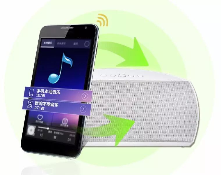 支持一键同步手机中的高品质音乐到音响(限安卓系统);