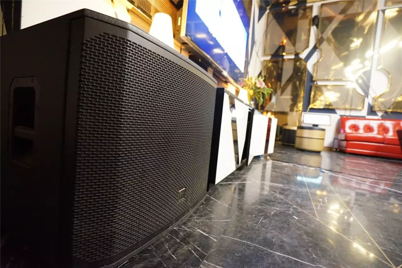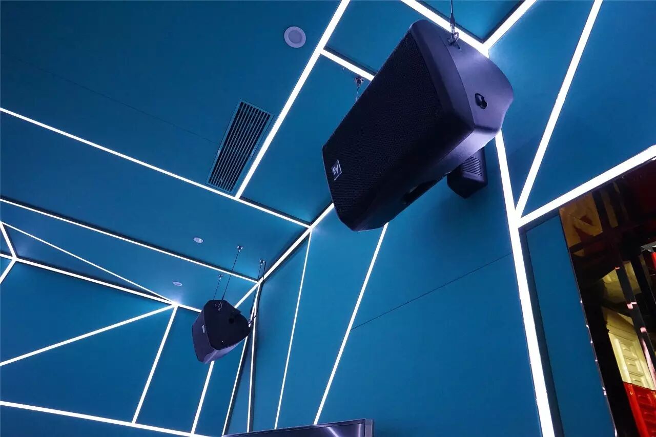 小包房采用两只ZX3单12吋全频扬声器和一只EKX单18吋低音扬声器;中包房使用两只ZX3单12吋全频扬声器为主扬声器,两只ZX1单8吋全频扬声器为辅助扬声器,两只EKX单18吋低音扬声器;大包房设计为五只ZX3单12吋全频扬声器和4只EKX单18吋低音的多声道扩声系统。