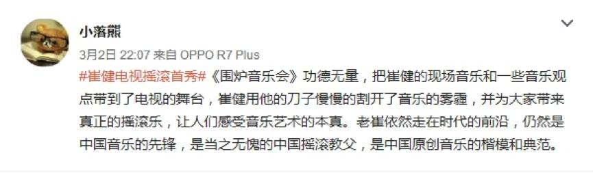 《围炉音乐会》以极为严苛的态度和创新的角度打造音乐节目,让崔健也放下防备,从容表达自我:“一直想站在电视的舞台来一场(演唱会),起初我也担心过节目的专业度,但最终我们的感受是,非常棒!”