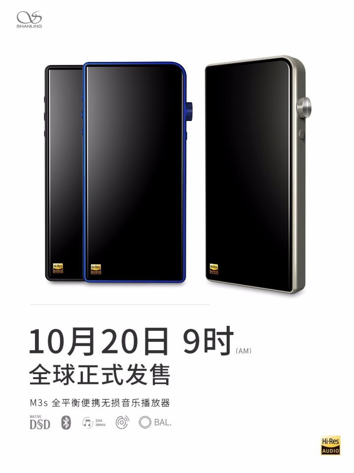 山灵M3s便携无损音乐播放器10月20日9时全球发售!历时一年的开发,无数次的推倒重来,千锤百炼,最终京东众筹创造了440%的壮举。本周五,M3s将正式与大家见面!