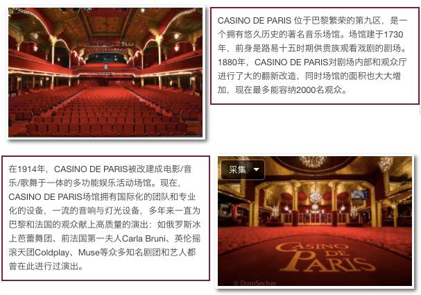小编来解答一下不少歌迷最关心的场馆到达方式的问题。因为CASINO DE PARIS位于巴黎最繁华的市中心之一九区,所以交通是十分方便的,地铁/城际快线/巴士多个站点都能快捷到达哦!