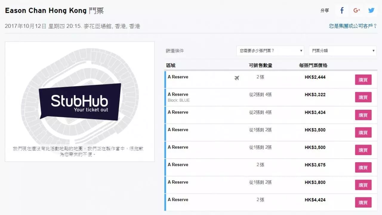 这次说到没有内部订购,今早正式发售,不用10分钟门票已被抢购一空,至于「黄牛党」知道每次Eason开演唱会都有价有市,所以没到lunch time已经在网上平台放票,据知最高票价已经炒起至$4424,认真疯狂!