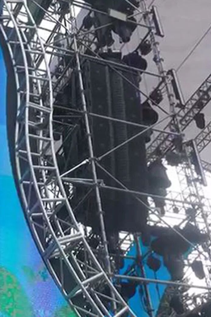 音乐会的现场扩声系统由深圳频响会议系统设备有限公司提供。扩声系统全部采用JBL扬声器,包括主扩声的24只 VTX V25双压缩驱动器的全尺寸线阵列扬声器,16只 VTX G28双18寸超低扬声器;8只 VP7215有源两分频扬声器作为前补声,另外的16只 VP7215作为舞台返送使用。