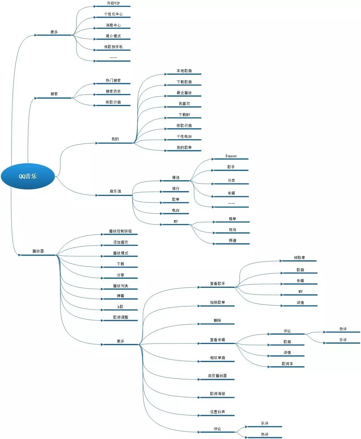 QQ音乐信息架构更加传统,功能分组清晰。
