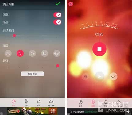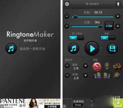 《RMaker》带有淡入淡出效果,且可制作30秒或40秒两种长度,只不过需要升级至高级版才可制作40秒的铃声,小编觉得没什么必要,30秒足够使用。《RMaker》还带有高级模式,用户可调节铃声播放速度,最高可调至2.1倍速率播放,它甚至可以调整音调,比如转男声、转女声或转童声,制作出的音频不仅独具个性,可能还会吓人一跳吧。