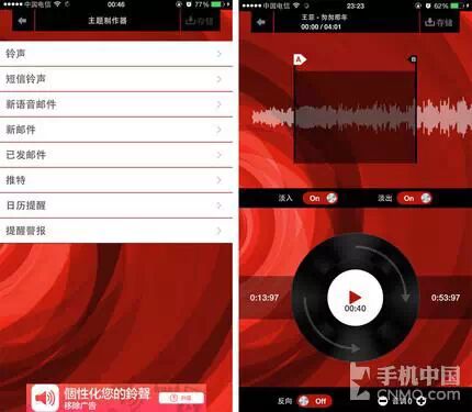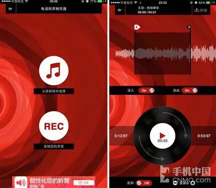 使用效果无需付费,但是制作40秒的铃声还是得升级后才行,《电话铃声》还有一个独特的功能,就是反向播放音乐,不知您喜欢的歌曲倒着放,听起来感觉如何。