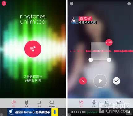 制作铃声对于它来说也是小菜一碟,从本地曲库中挑选好需要的素材后,截取自己想要的部分即可。《电话铃声》的编辑界面有些特殊,手指无法拖动选择,只能旋转下方的黑胶唱片,虽然操作方式有够独特,可惜并不方便。