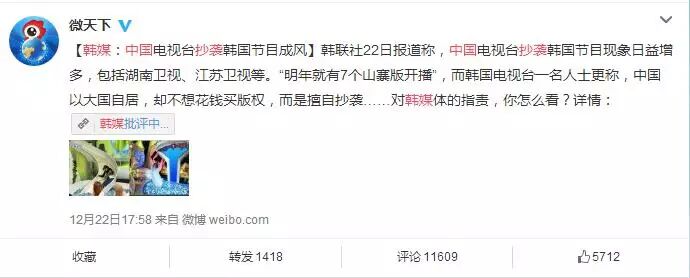 然而……这次网友们出奇一致地没有喷回去,反而承认人家韩国媒体说得对,看来中国综艺抄袭韩国这个事情,连我们自己都看不下去了。