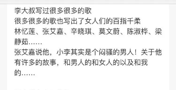 了解李宗盛是通过林忆莲,她唱他写的歌,每一首歌,都包含两个人的情感,李宗盛把人生写的太明白,把爱情写的太刻骨,林忆莲便把每一首都唱的如此透彻,我喜欢李宗盛,因为他写的歌,他的每一句歌词都能写进人的心里,所以希望有可能的话,推荐你们听一听李宗盛的歌,每一首。