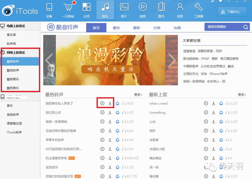 其实用iTunes设置铃声挺麻烦的,一般小羽君都不会用这个,其实只要借助第三方软件下载铃声非常简单!小羽君今天用的是iTools工具~