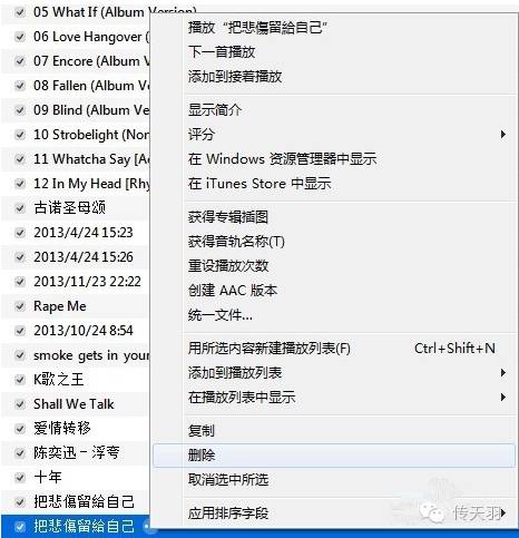 9.把原来iTunes——资料库——音乐 下面同名、同长度的文件从列表中删除