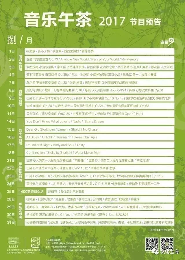 上海音乐厅为大家在炎炎夏日准备了一抹绿色,每个午间都有凉“茶”等着为大家消暑。