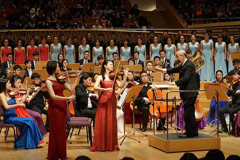最后,曹鹏先生执棒,由音乐学院副院长、艺术总监夏小曹教授与小提琴教师谭雅冰担任领奏,合唱团、交响乐团共同演绎的电影《上甘岭》的主题歌《我的祖国》绚丽登台,为《2018“泮池之声”上海大学新年音乐会》画上了圆满的句号。
