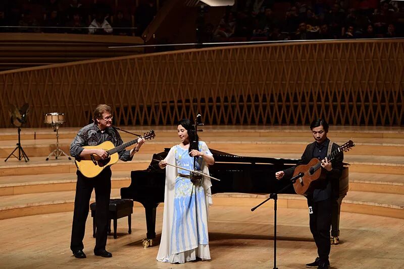 音乐会特邀两位特聘教授:著名二胡演奏家马晓晖和她的丈夫、美国著名心理学教授提姆•凯利共同演奏了二胡与吉他改编版本的英国民谣《绿袖子》,用二胡和吉他两种中西方乐器共同演绎的这首脍炙人口的民谣别具风味;二胡与小乐队演奏的另一首二胡曲目《赛马》在经由马晓晖老师改编和重新创作后,将骏马奔腾嘶鸣的样子展现的惟妙惟肖,让现场爆发出热烈的掌声。