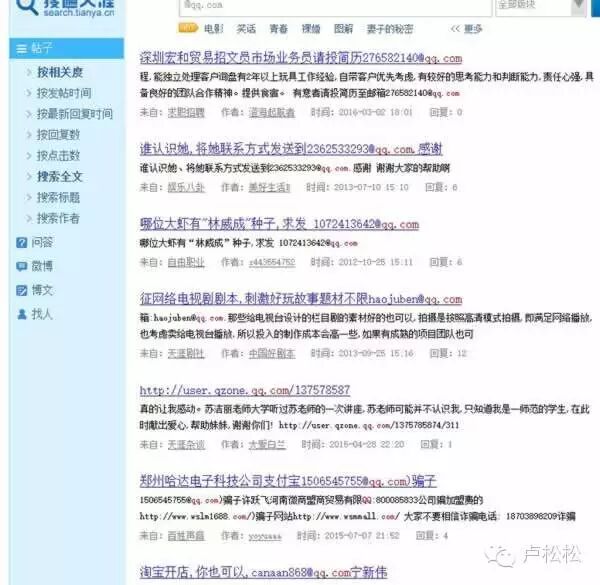 打开天涯论坛,在搜索框中搜索“@qq.com”。