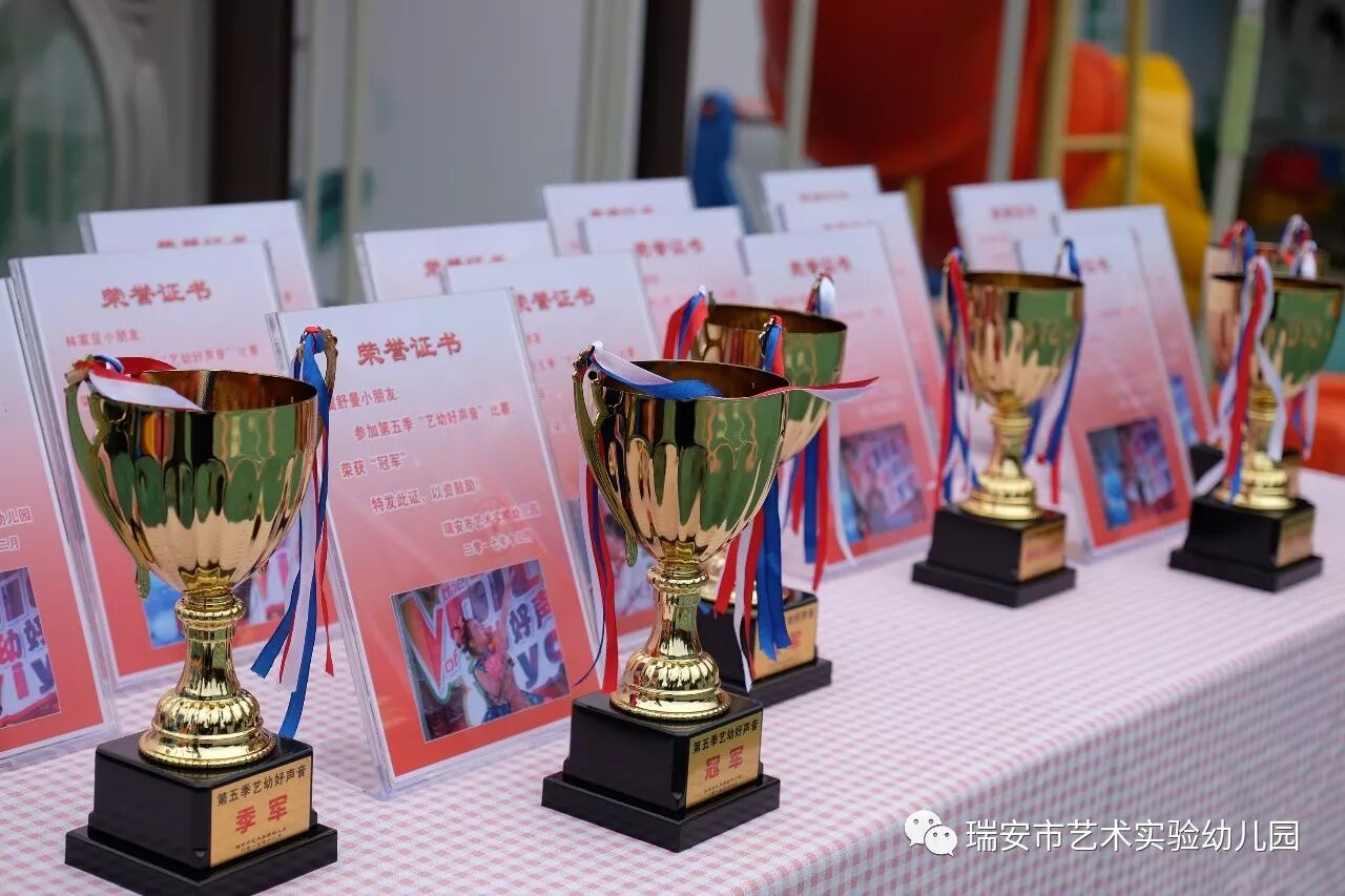 园长妈妈还为艺幼好声音获奖的小选手们准备了隆重的颁奖仪式。瞧~拿着奖杯的小选手们可神气了!