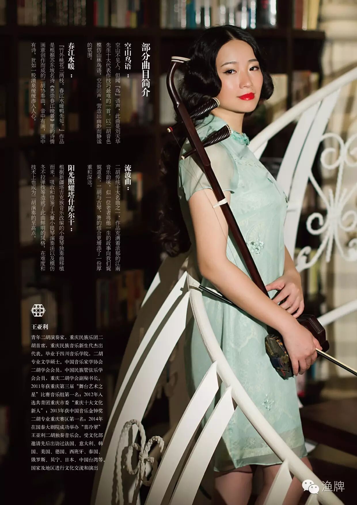 “美人在何,夜影流波。”“渔”独家服装赞助的「王亚利二胡独奏音乐会」,将于7月7日,在重庆大剧院中剧场隆重上演,届时欢迎大家莅临观赏。
