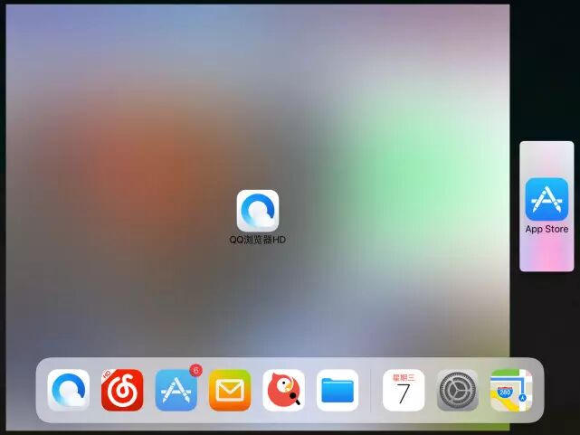 iOS 11加入了全新的浮动分屏功能,用户无需再通过手指从屏幕右侧往左滑动来呼出分屏。而是在应用界面呼出Dock,将另一个分屏的程序从Dock拖动至屏幕一侧。