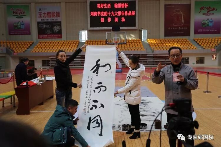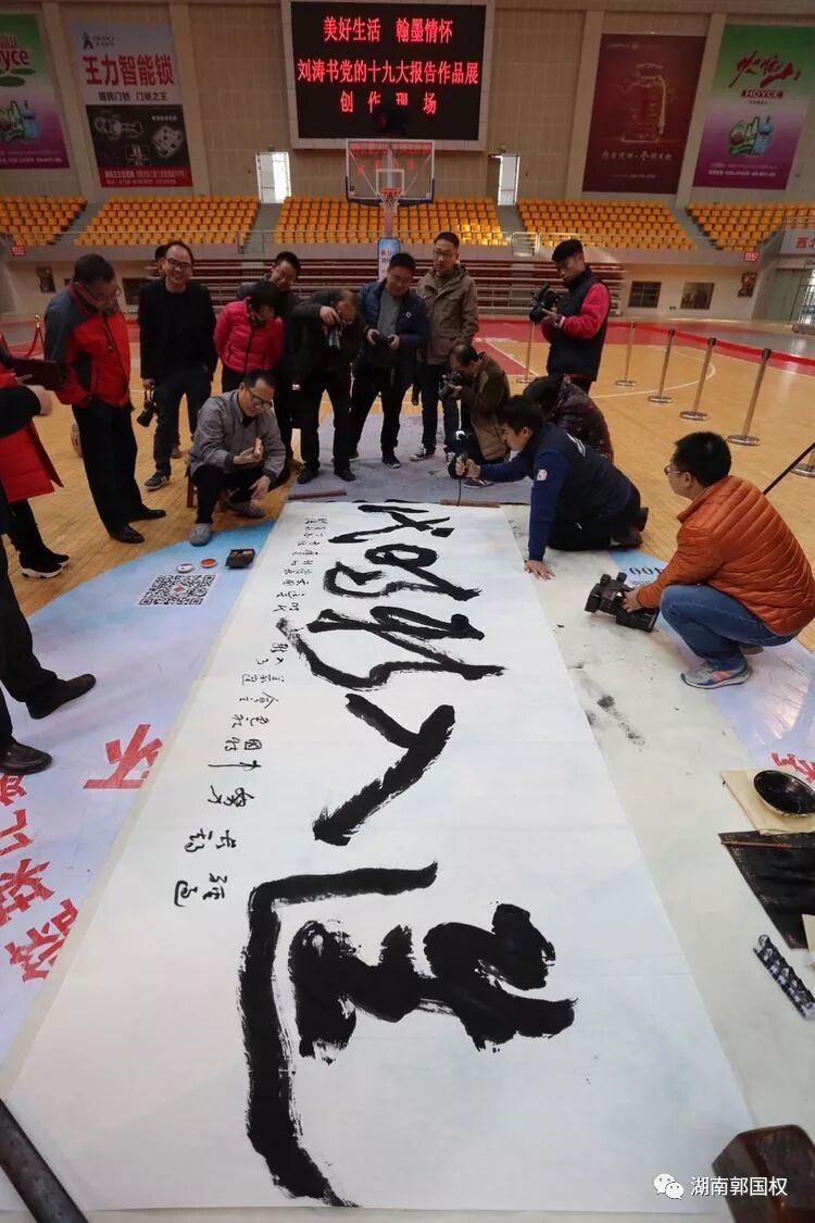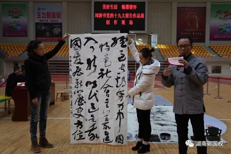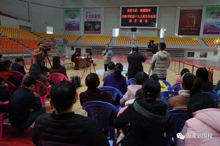 娄底宣讲十九大有新意 翰墨豪情书写华章:党的十九大精神宣讲又有了新形式,12月9日,娄底市全民健身服务中心主任、娄底书法与研究会副会长刘涛在娄底市体育中心体育馆举办"美好生活与书法欣赏"讲座,并现场挥毫以党的十九大报告为内容创作书法作品。