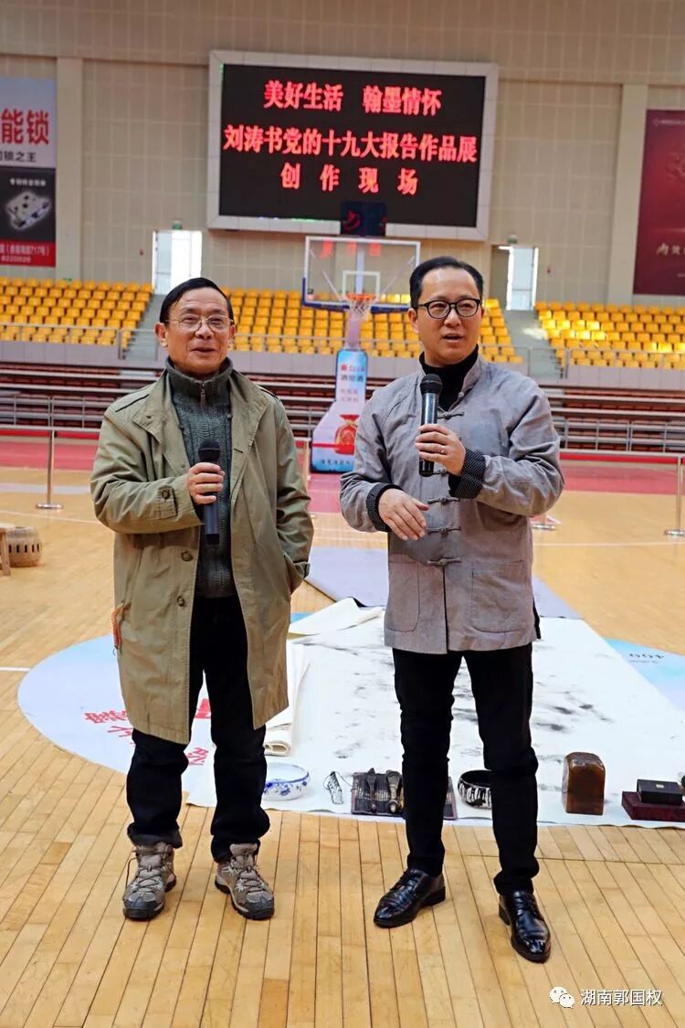 在随后进行的书法现场创作中,"走进新时代"五个金戈铁马、气度非凡的大行草,具有深厚的艺术底蕴和鲜活的时代气息,刘涛表示,这是用传统文化宣讲十九大精神的一种特别形式。据透露,刘涛将于12月28日在娄底美术馆举办以"党的十九大报告"为内容的个人书法展。(郭国权 周颖)