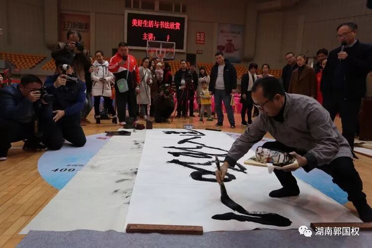 12月9日,娄底市全民健身服务中心主任、娄底书法与研究会副会长刘涛在做讲座中互动。