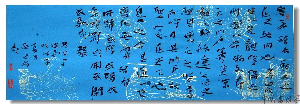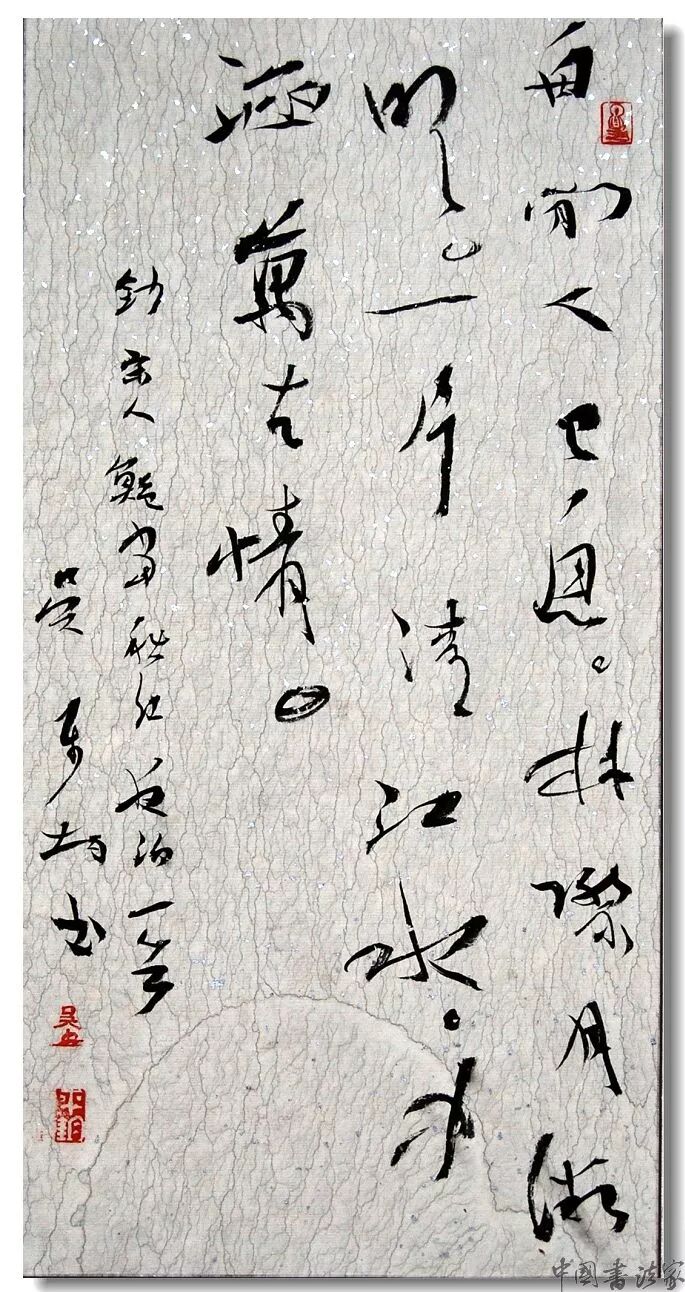 平静的平均,书法一点不平静,他从传统引借了一种爆发力,一种情感的直接的抒发。以飞动嫖姚跌宕之势,造成一种回旋往复的效果。从平均当下的书法看,他主要在魏碑厚重的基础上写出飞扬,在飘逸之中又有厚重,入碑入帖多年,他的内心现在有一种叛逆,一种偏执,他的心性要走出传统的藩篱,写出一种气势与气韵。平均的不平静,是一种不满,是一种自负,是一种自得。他在打破自己,又在重新地整合自己。