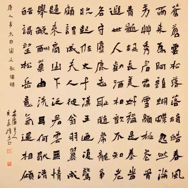 平均的创作,面对的是他自己,他是和自己的孤寂做了很长的斗争,写出的自己,这个自己不是一溪湖水,不是孤芳自赏,是自己坚守,是精神的写照。平均的书法还是趋同于现代,用传统打造自己的现代精神,用笔墨营造着自己的世界。体谅和敬重传统,尊重每一个提携自己的师友长辈,革新、超越、断裂、接续、继承。