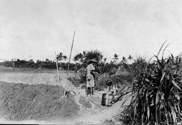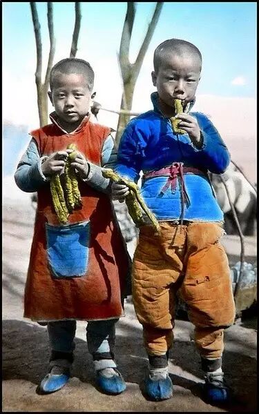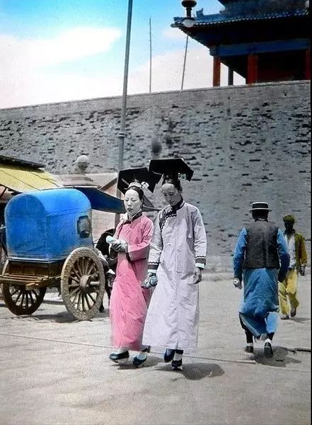 中国购买的飞机用绳子拉到汉口机场,途经一个小镇时,与人力车行构成了显明的对照。