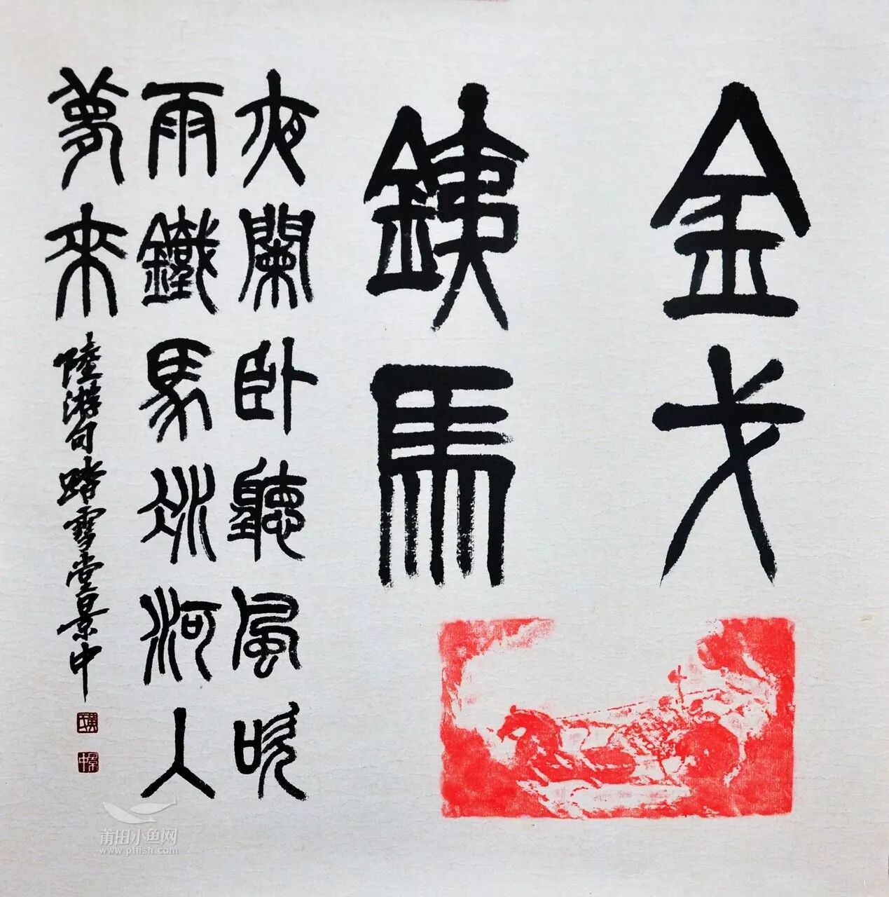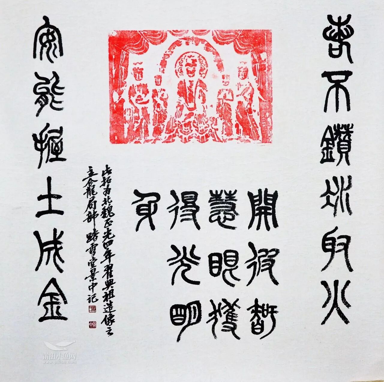 继“心经”展后,12月28日,莆田市书法家协会副主席黄景中的个人书法篆刻作品展“闲庭信步.肆”在镇海群众艺术馆拉开了帷幕。本次展览将持续一周(7天),展出黄景中老师近年创作的书法拓片作品50余件、篆刻作品50余方、陶瓷作品10件,是一次艺术家艺术水平的较全面展示。