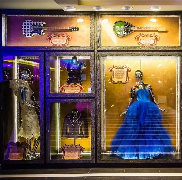 ▲在Hard Rock Cafe橱窗内争奇斗艳的各式服装