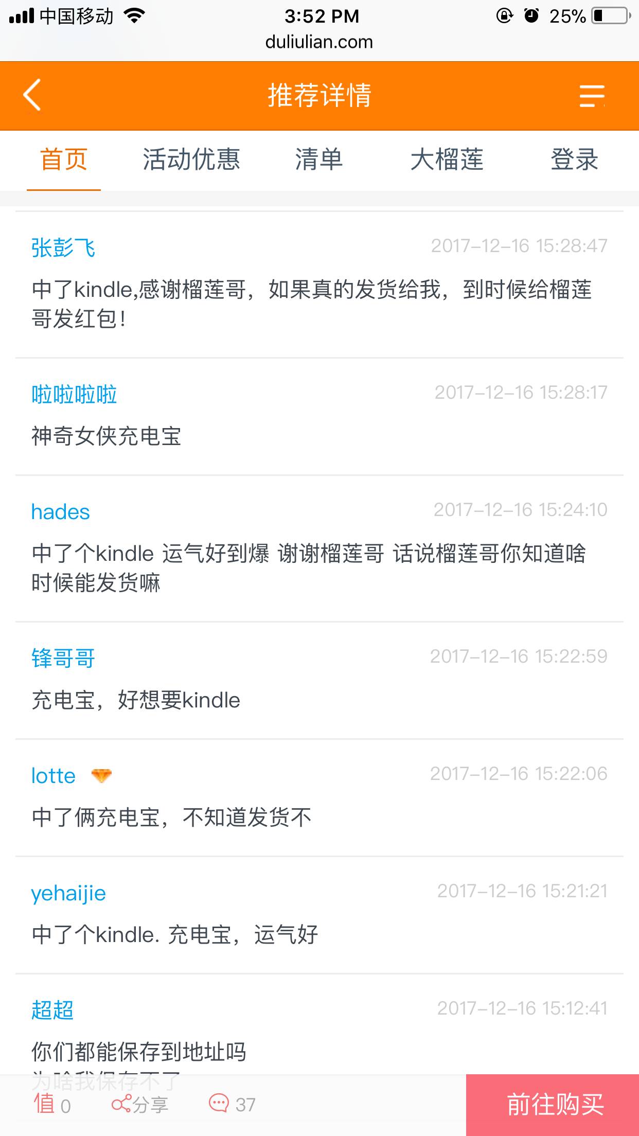 中奖记录很高多人中kindle 移动电源、音响
