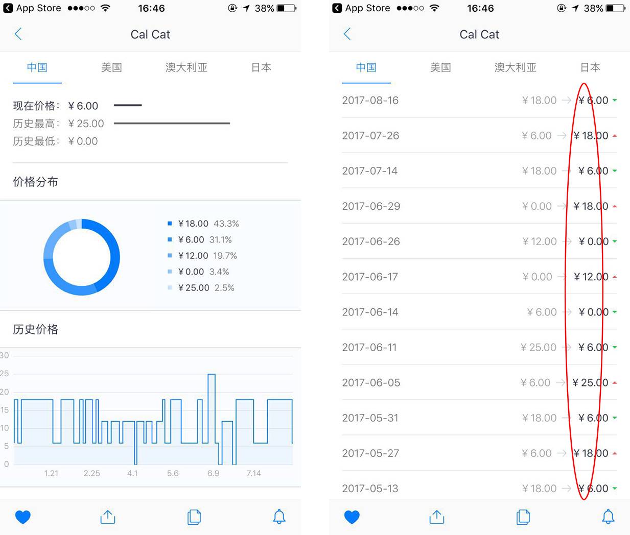 如果,想下载的App让你下不了手,那么你可以通过这款App查询历史价格,还可以对比四国的价格,选择最佳购买时机。