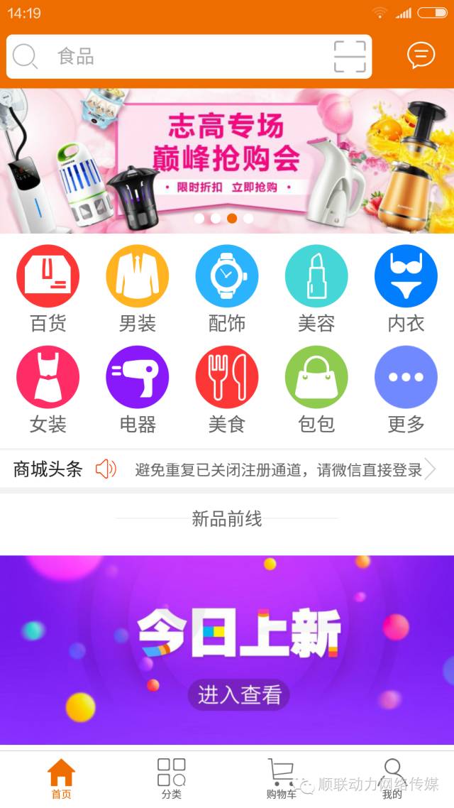 第二步,进入顺联动力商城,根据分类浏览商品: