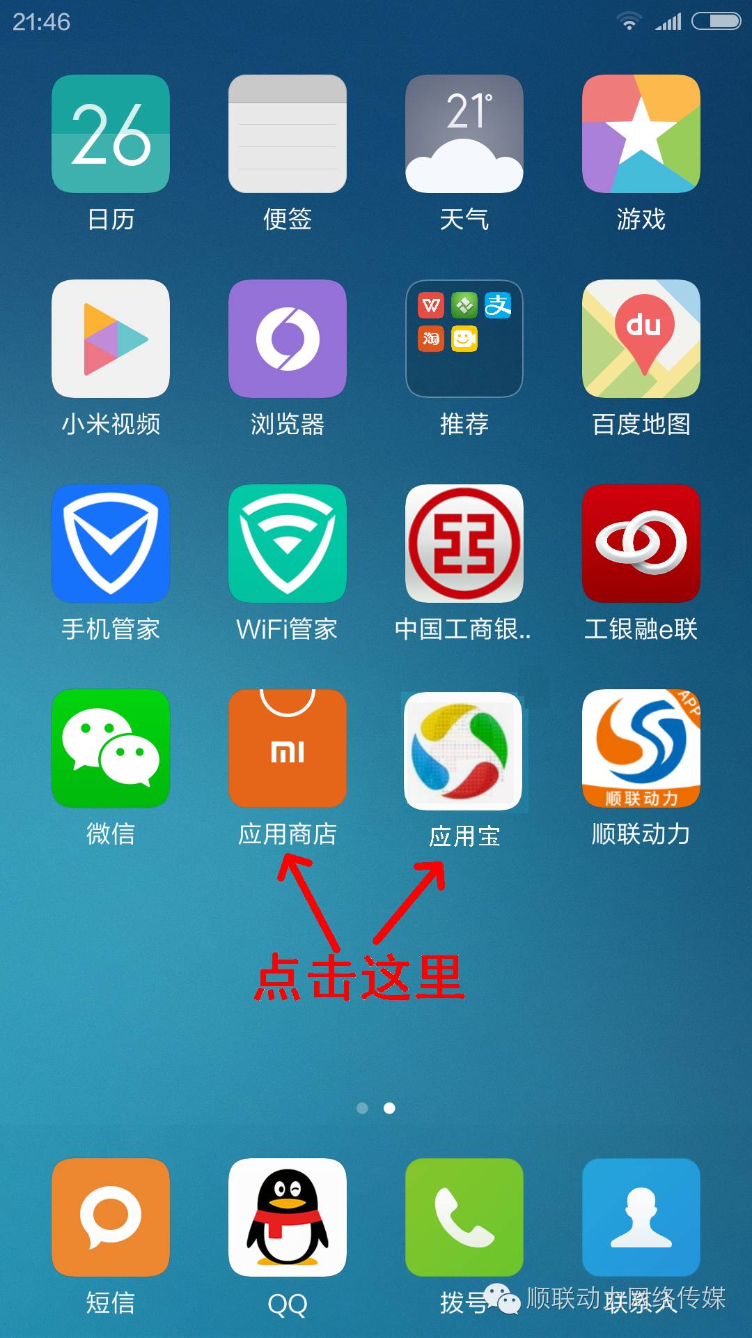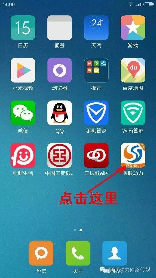 第一步,在手机桌面,点击顺联动力APP图标: