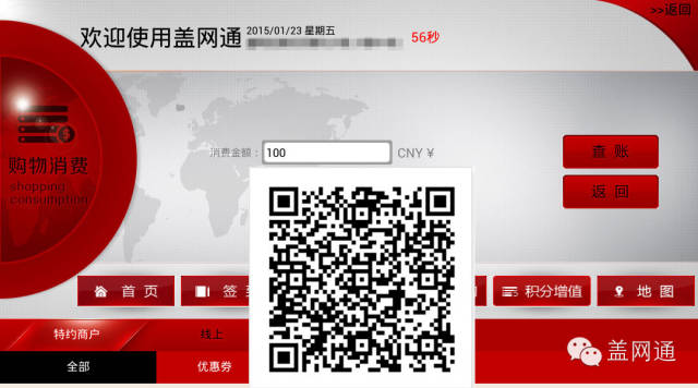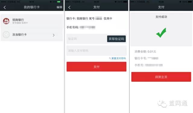 在盖网通界面上直接点击黄色框「手机支付」,出现以下界面