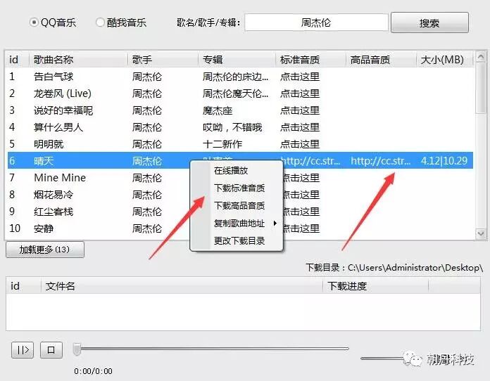 在付费音乐下载器搜索周杰伦或者是他的某首歌或专辑,然后找到我们要下载的歌曲,鼠标右键之后会出现一个选择框,我们可以选择在线播放或者是下载某一品质的歌曲。