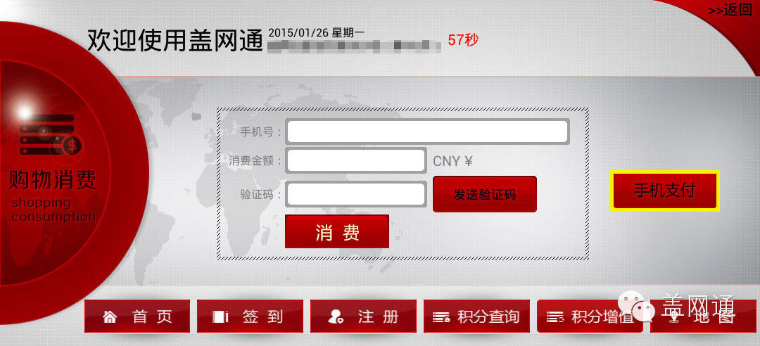 在盖网通界面上直接点击黄色框「手机支付」,出现以下界面