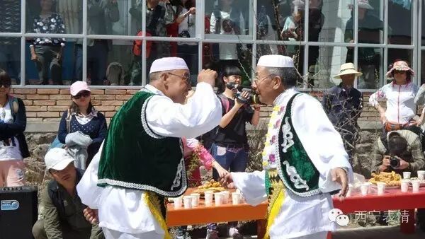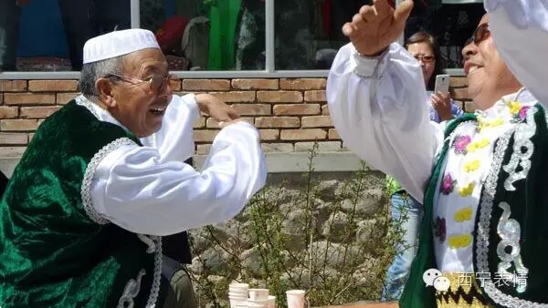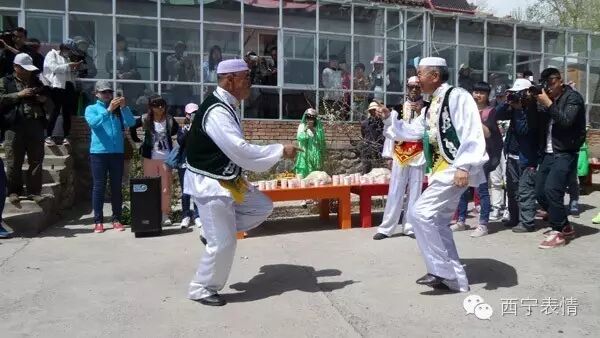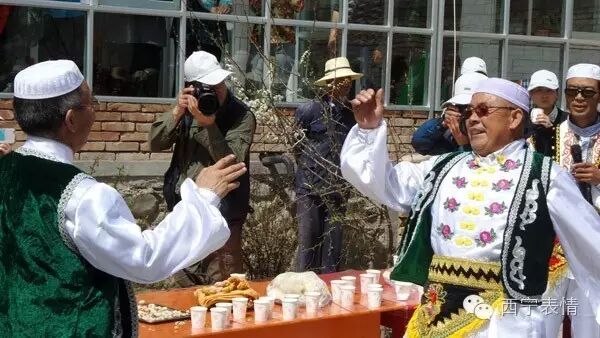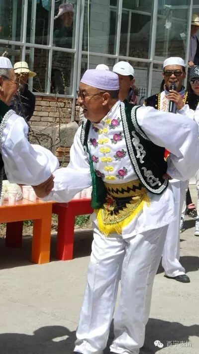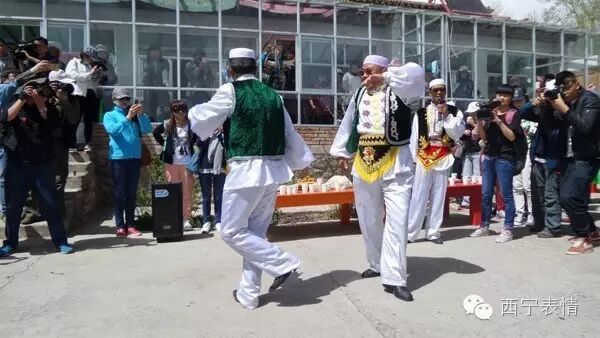 在青海回族“宴席曲”中,门源回族“宴席曲”曲调丰富、辞令优美、叙事完整、易于舞蹈。表演形式有独唱、对唱、合唱、随唱、问答、独唱加合唱、对唱加合唱等,表演者边唱边舞,场面活跃,气氛热烈,趣味横生。
