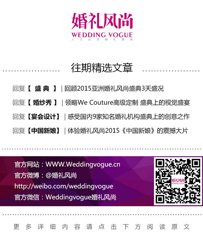 其实最初我们承接2015亚洲婚礼风尚盛典的时候,只有一个答谢晚宴的工作,随着越来越多深入行业发展的话题而增加了9场宴会设计发布,从商谈到策划,再到历时三天完成整场活动,种子已投入了19个工作组,100多位工作人员,还推掉了3月的一些业务,无数次说着“不可能完成”,又凭着超强的毅力完成了任务,这次盛典,也给了我和同事们许多想不到的“惊喜”。现在回想起来,心里最想呐喊的反而是“如果时间再多一些,我们可以做的更好”。
