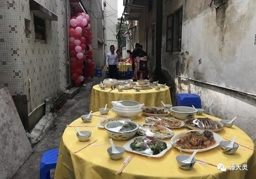 桌子就设在苏炳添家门的走廊中,没有酒店的富丽堂皇,